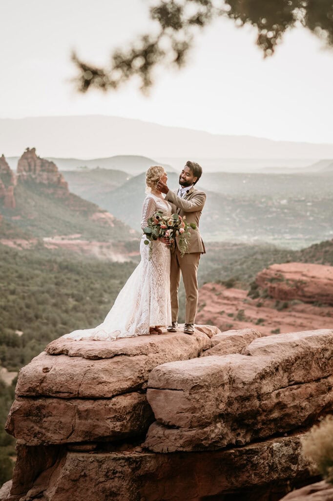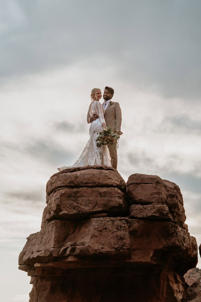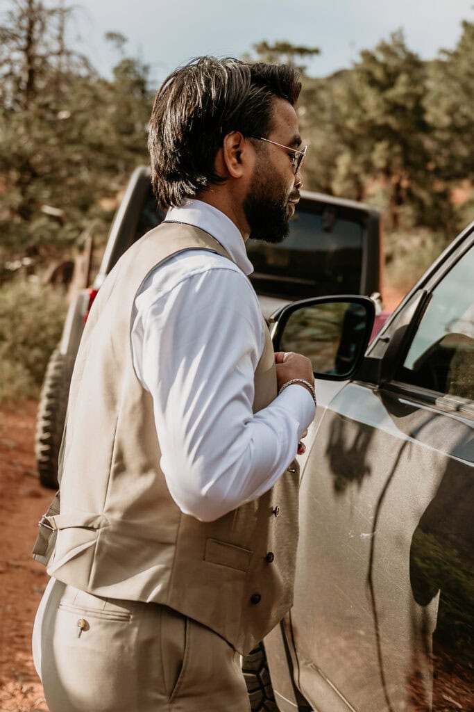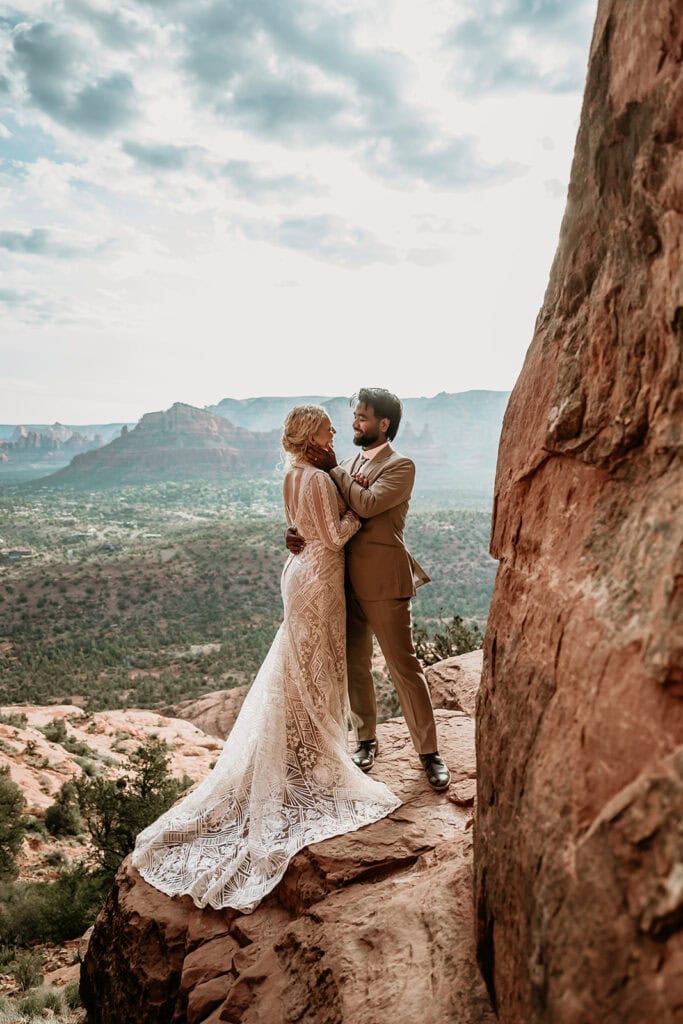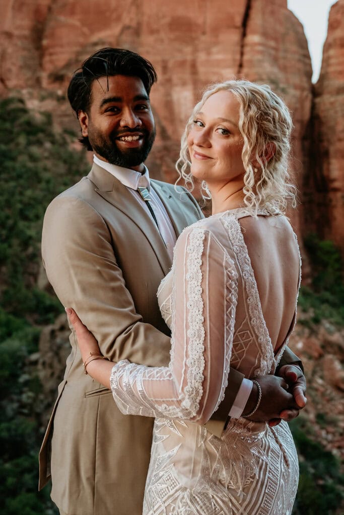 Jillian and Sai’s full-day Sedona Elopement up Cathedral Rock and Off-Road adventure up Merry Go Round Rock
