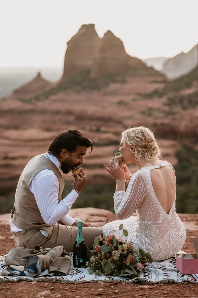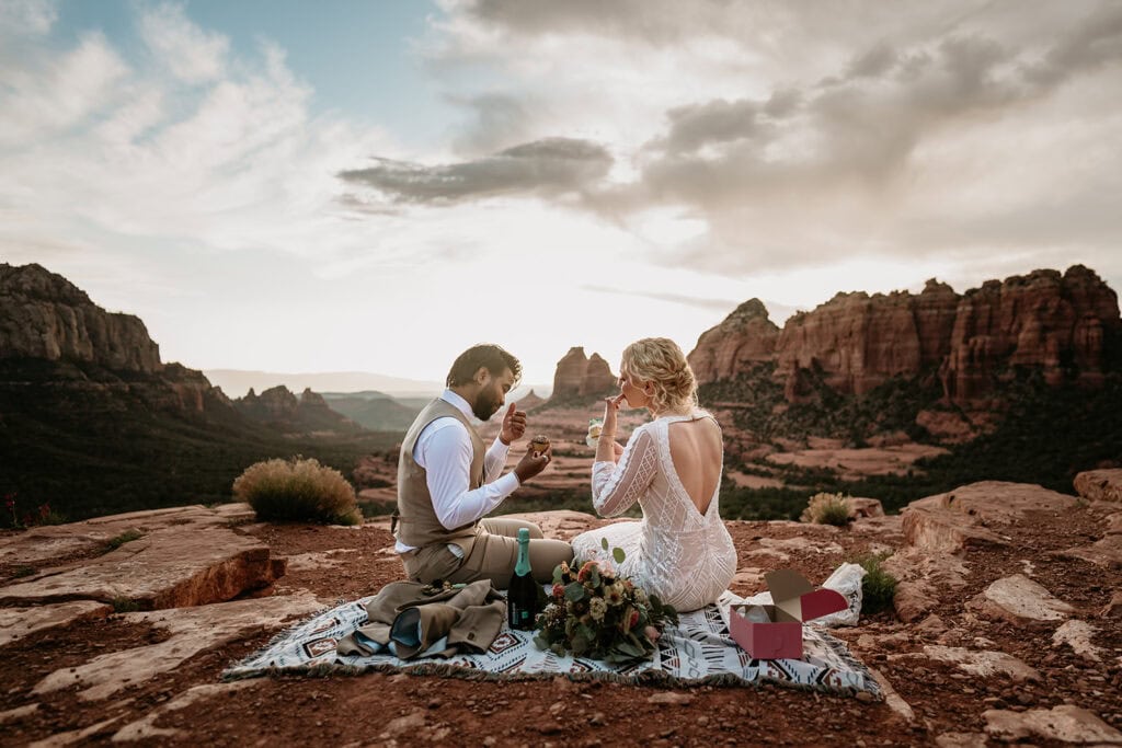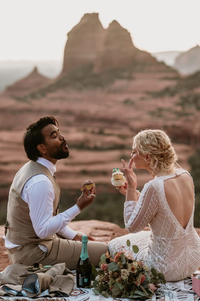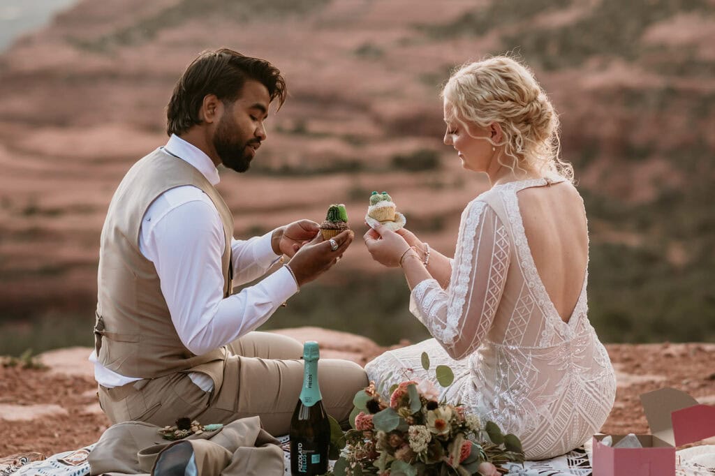 They popped champagne, ate cactus cupcakes, and leaned into the evening as the sun set behind the red rock cliffs.