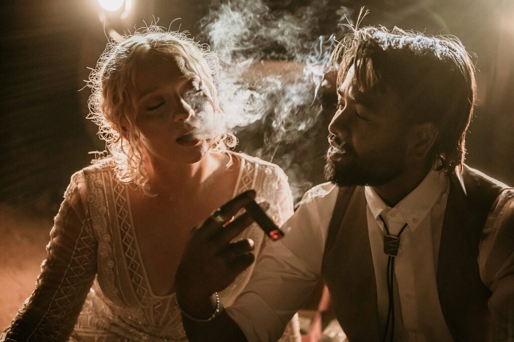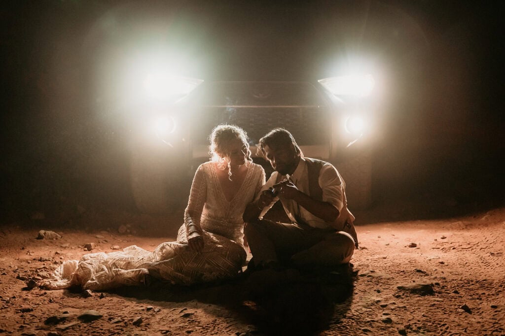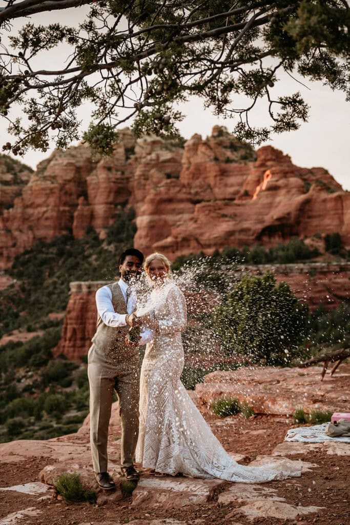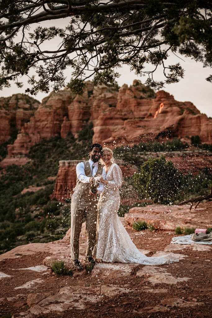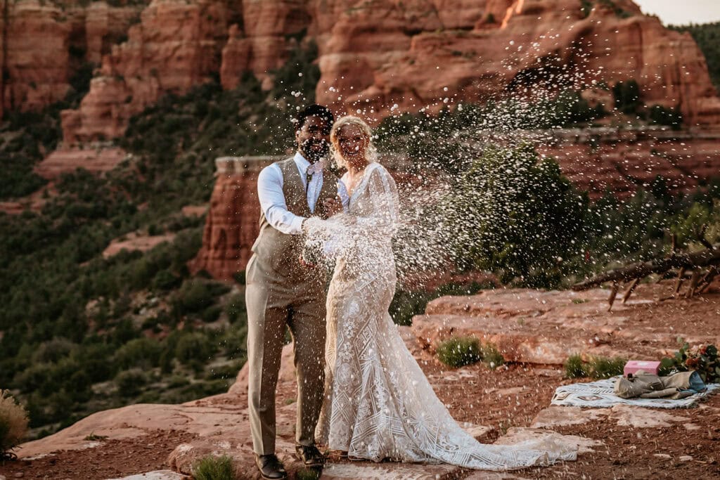 They popped champagne, ate cactus cupcakes, and leaned into the evening as the sun set behind the red rock cliffs.
