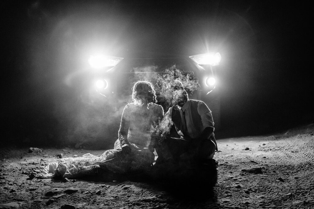 On the drive back down, we stopped at a quiet nook where they shared a cigar together, just the two of them with headlights cutting through the dark.