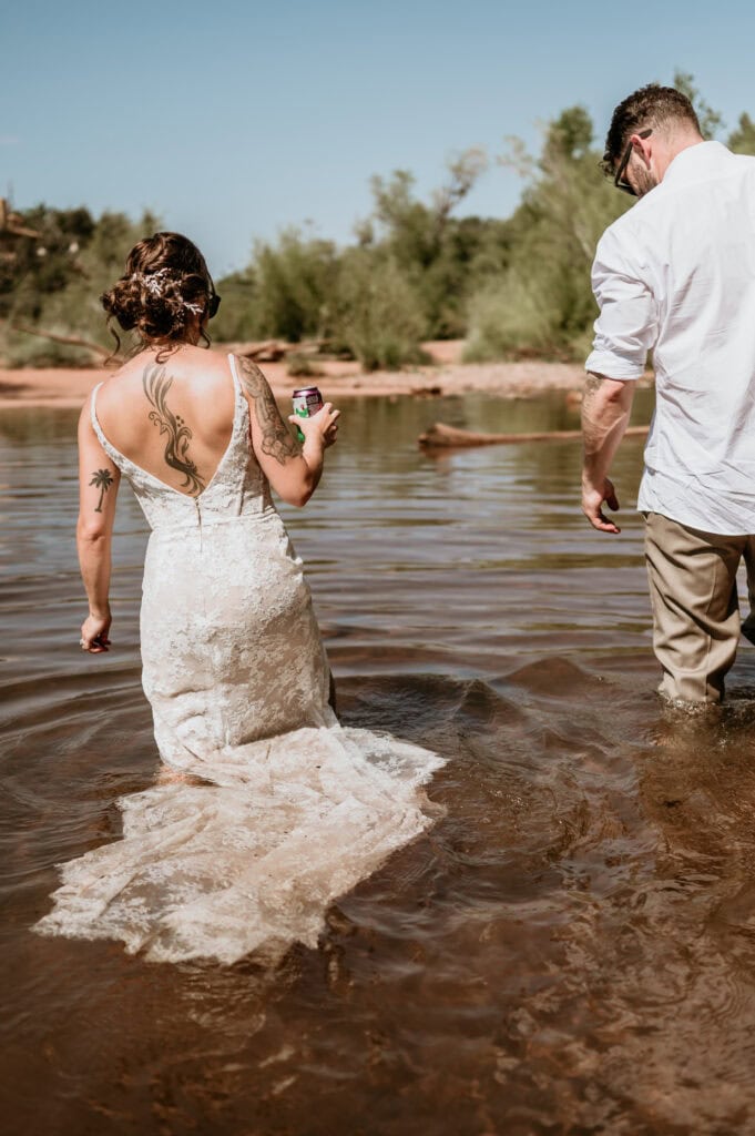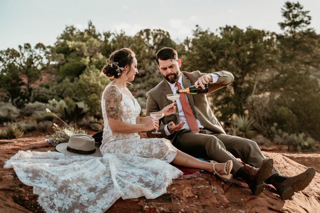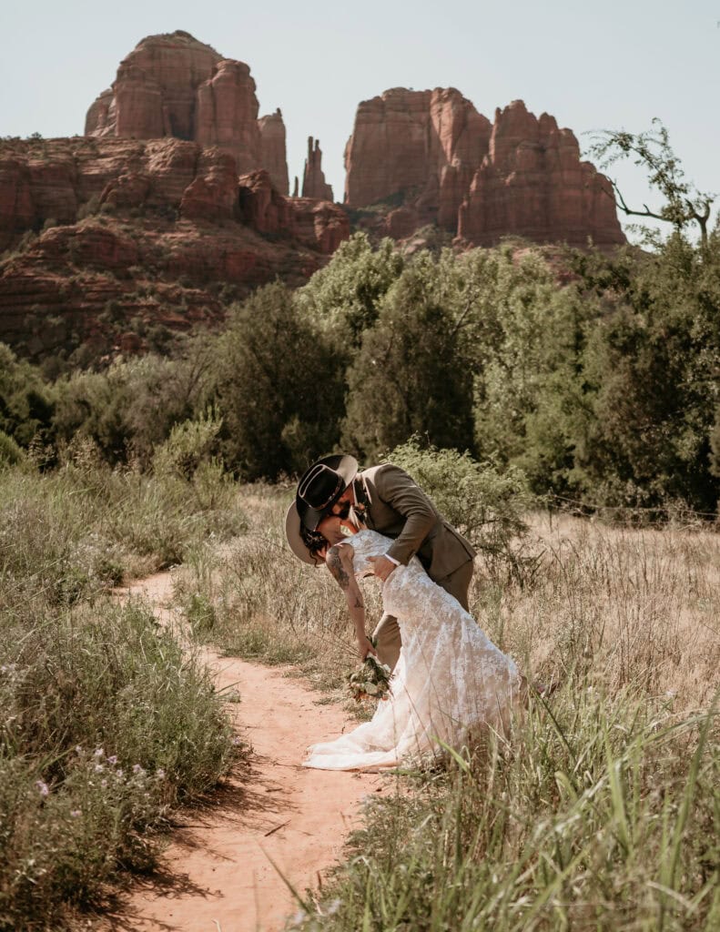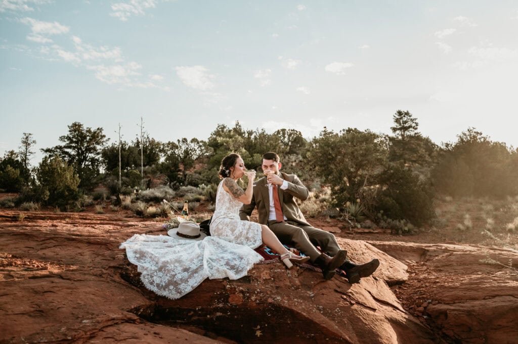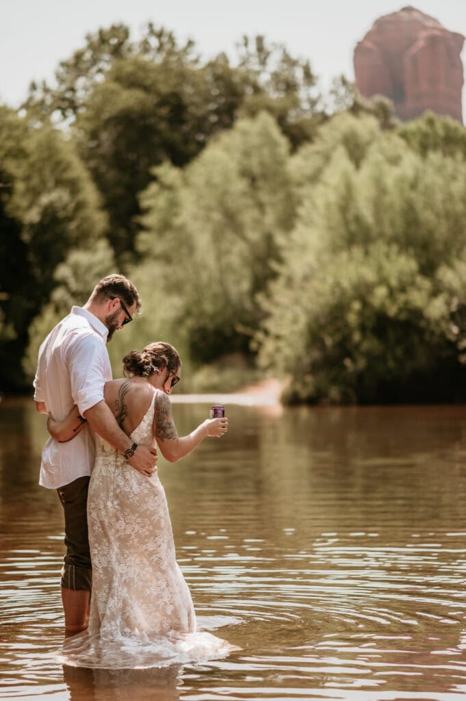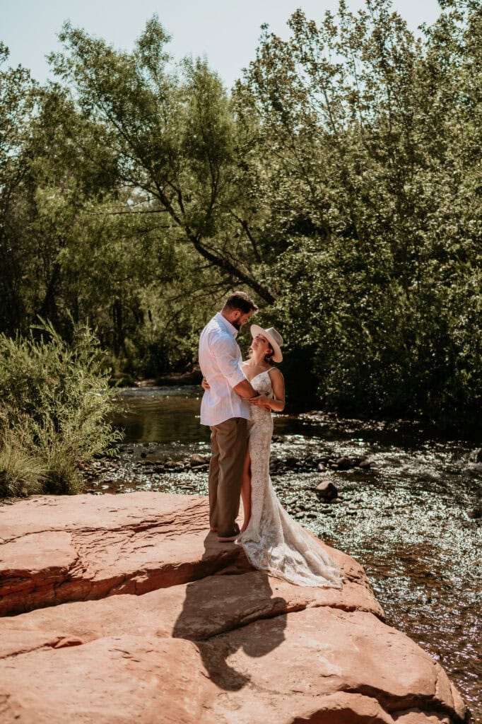 A Summer Sunrise Sedona Elopement with Red Rocks and Creekside Celebration