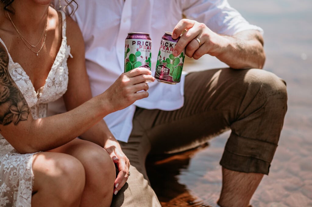 Next, we headed down to Crescent Moon Ranch. Shade from the trees, cool water flowing through the creek, and red rock reflections at Red Rock Crossing gave them a chance to slow down and reset. Shoes came off, sunglasses came out, and they cooled off by wading into the water and cracking open prickly-pear beers.